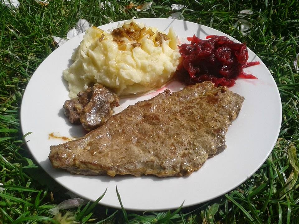Köretnek krumplipürét készitettem, és ecetes céklával tálaltam.
