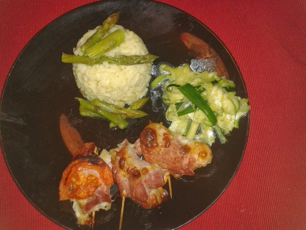 Tegnapi kiruccanásom során az egyik 1 fontos üzletben két nagyon szimpatikus szakácskönyvre bukkantam. Mikor hazaértünk, átböngésztem őket és meg is találtam a mai menü ötletét. Kissé megszemélyesitettem persze, de a végeredmény nagyon kielégítő lett. Férjem aki bacon bolond, minap pancettával állitott haza. Volt itthon spárga (aszparagusz) gondoltam rátekerem, aztán mégsem… és így a pancettás göngyölt husi kapóra jött.