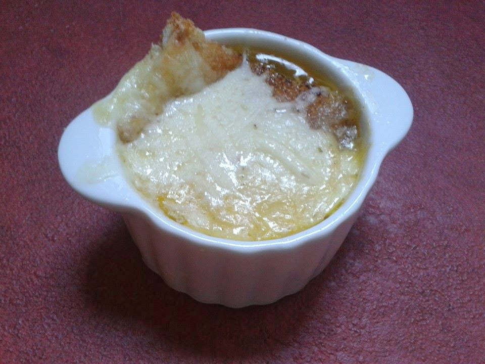 Mikor tálalásra kerül a sor, a levest hőálló tálacskákba merem, kenyeret piritok, a levesre teszem. Finom sajt szeleteket helyezek rá, és előmelegitett sütőben addig melegitem mig a sajt meg nem olvad.