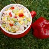 Ma köretként tálaltam. De van amikor kevesebb tésztát főzök,és a züldségeket nagyobb darabokban sütöm, ilyenkor salátaként állja meg a helyét. Izvilága fantasztikus!!!