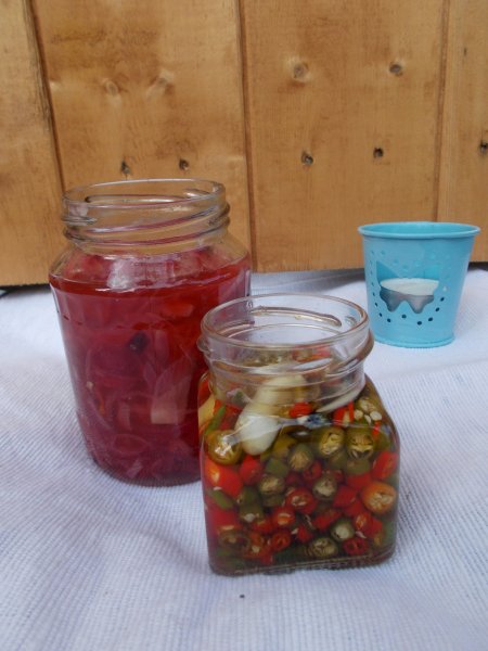 A grillezett husik mellé nagyon szeretem a savanyúságot is. Készitettem egy-egy adag savanyú lila hagymát és chilli paprikát, ha hirtelen eszünkbe jut a sütkérezés, legyen mihez nyúlni.