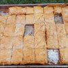 Nem kell benyomogatni, csak egy kis kanállal a tetejére tenni tölteléket, és maguktól elhelyezkednek a formákban. Kis pálcikákat seritünk a tésztából és teszünk rájuk egy-egy kis keresztet, majd felverünk egy tojást és megkenegetjük őket.