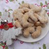 Töltelék: 3 tojásfehérjét kemény habbá verünk és óvatosan, hogy a habot ne törjük össze, hozzákavarunk 15 dkg porcukrot, 2o dkg darált diót, és 1 vaniliaport.